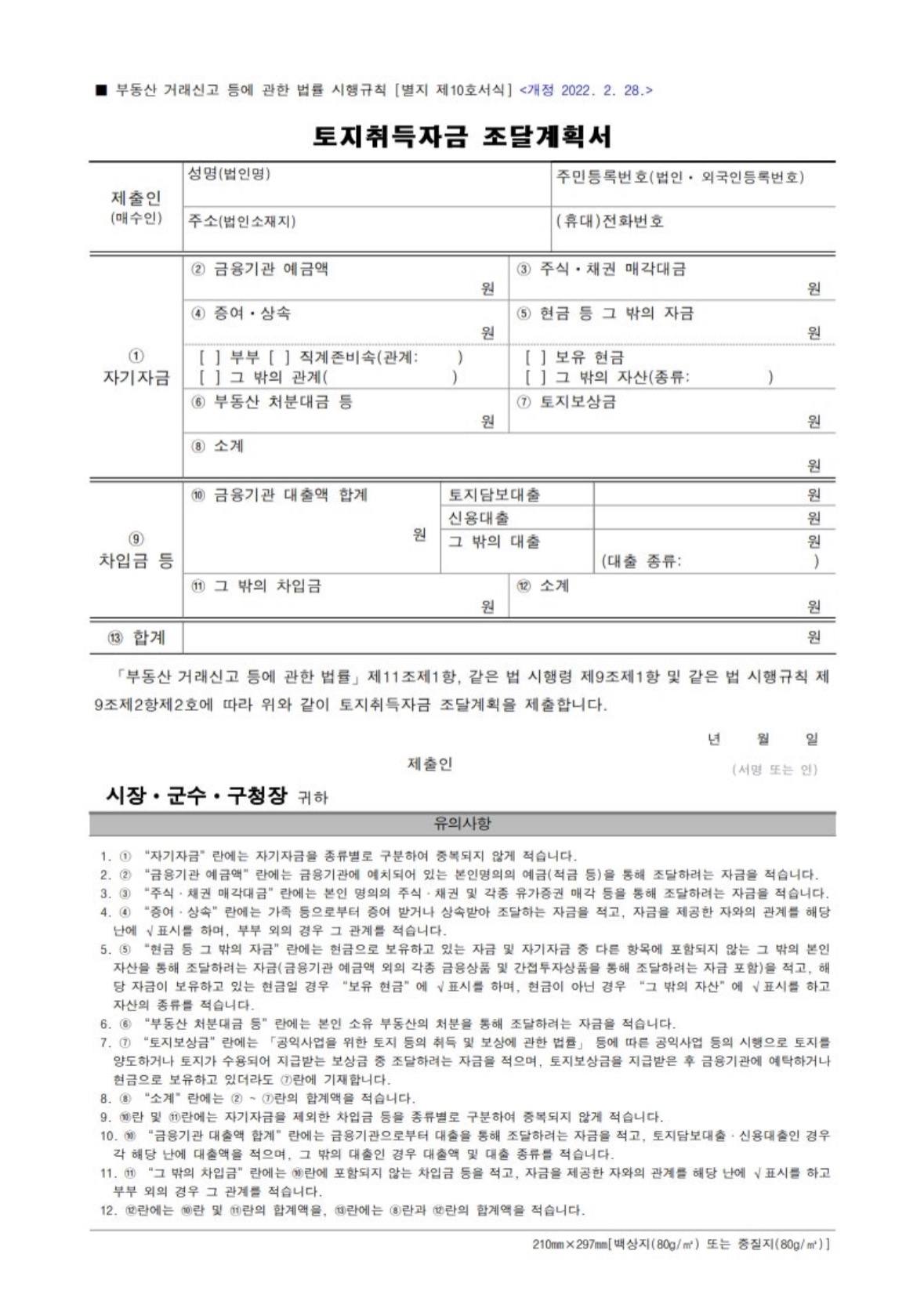 • 토지취득자금계획서